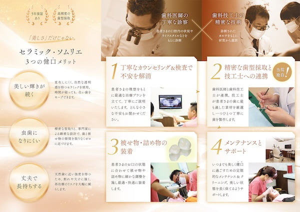 セラミック専任スタッフと歯科技工所による