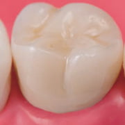 歯科用レジン(プラスチック)のブロックを、CAD/CAMと呼ばれるデジタル機器を用いて制作されるつめもの・かぶせものです。 ハイブリッドレジン(プラスチックとセラミックスを合わせた材料)を使用します。